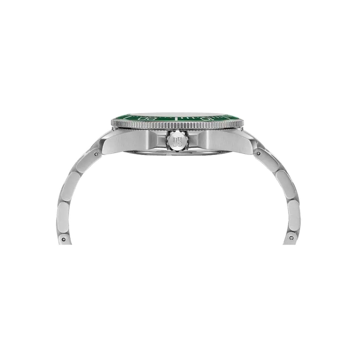 Uret er udført i rustfrit stål med en dyb grøn urskive, der tilføjer et strejf af raffinement. Den roterende bezel og de tydelige markeringer gør det nemt at aflæse tiden, selv under vand. Med en diameter på 43 mm er det både markant og komfortabelt på håndleddet.