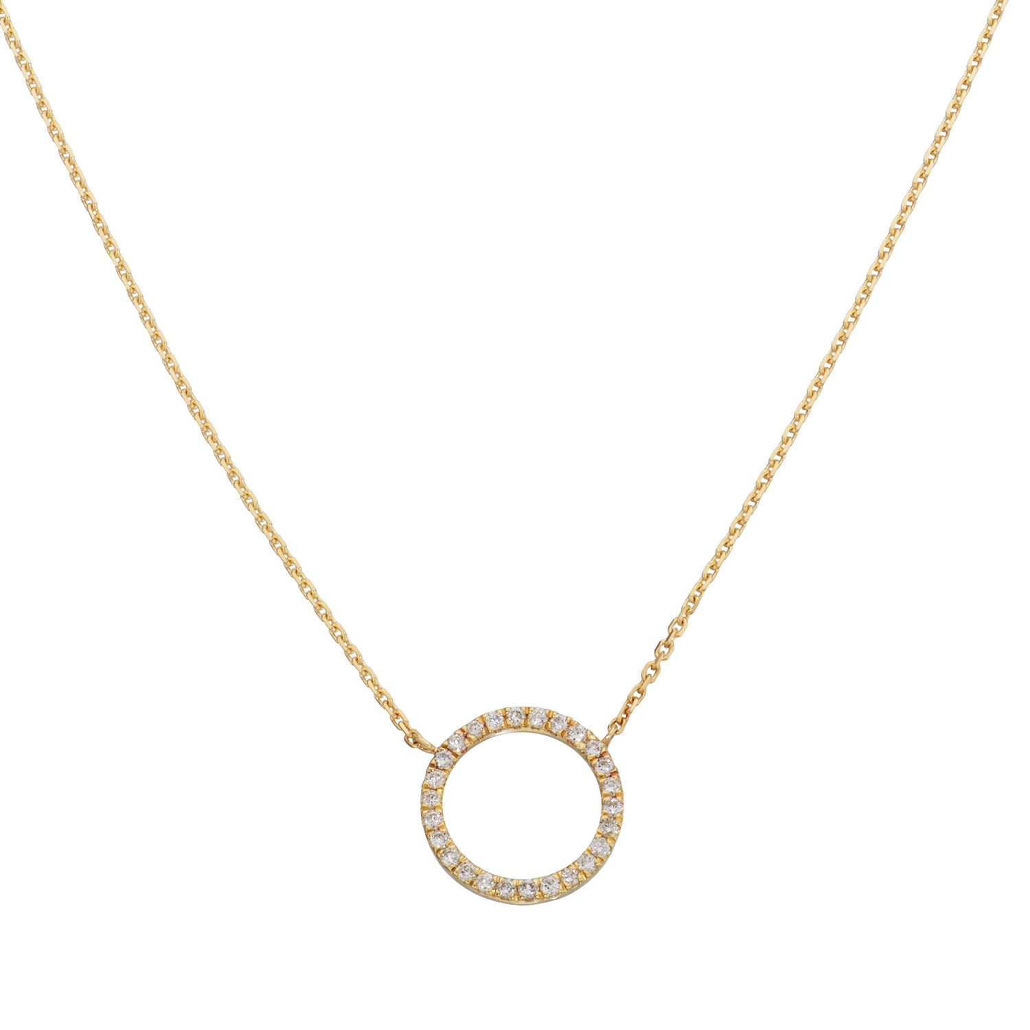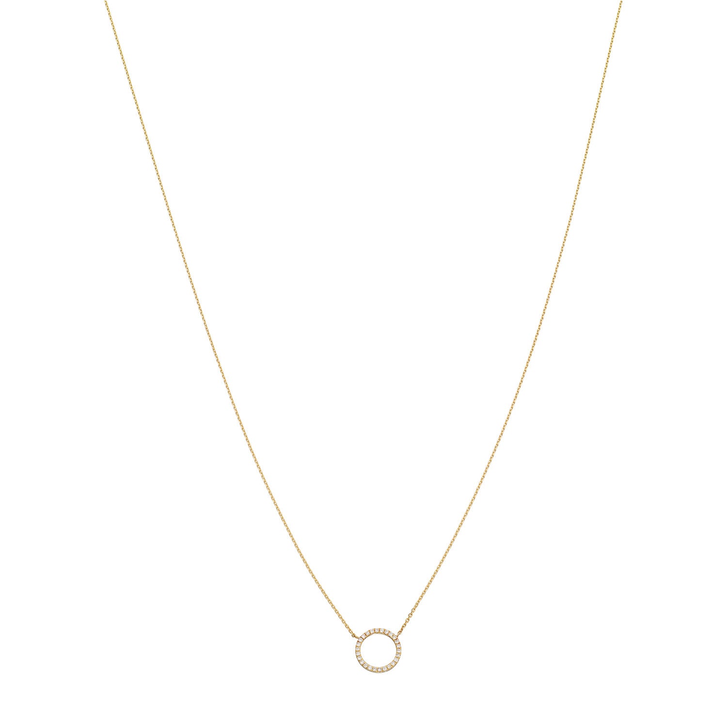 Halskæden er udført i en smuk guldfarve, der fremhæver dens klassiske og tidløse design. Den cirkulære vedhæng er prydet med funklende sten, der fanger lyset og tilføjer en strålende glans. Den fine kæde er både delikat og robust, hvilket gør den behagelig at bære hele dagen.