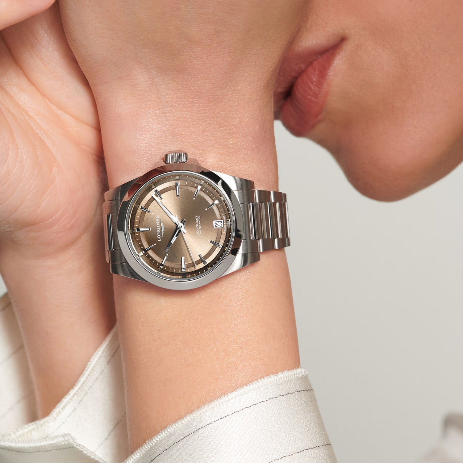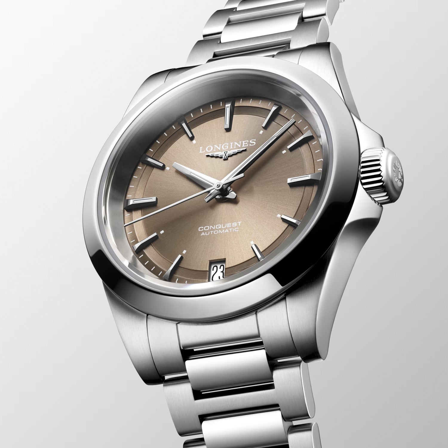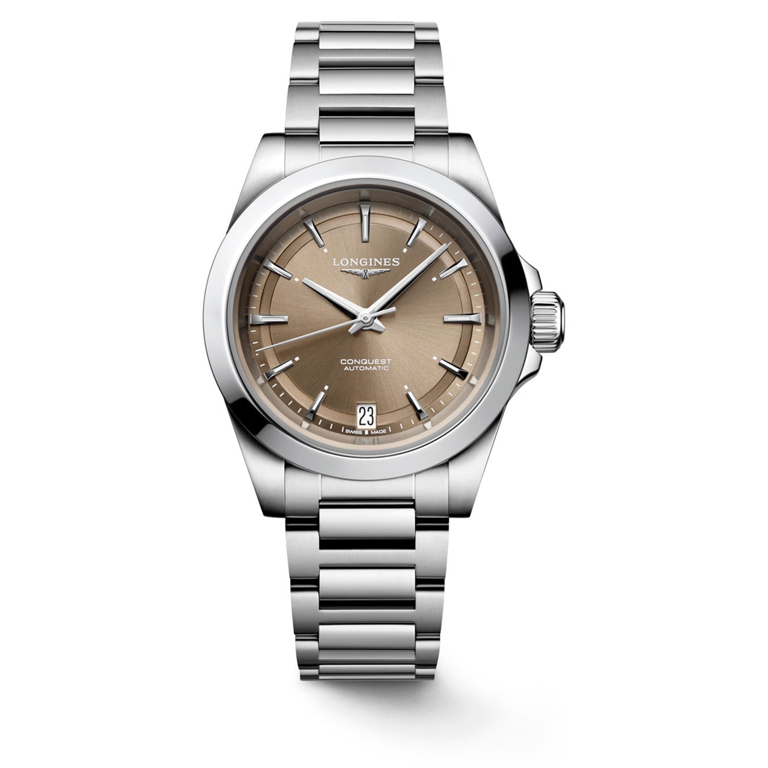 LONGINES - Conquest stål m. brun urskive, 34 mm - L34304626