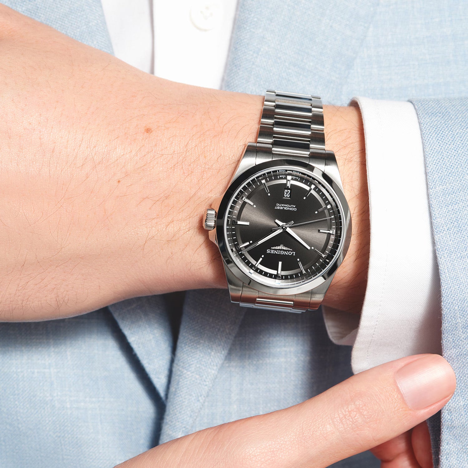 LONGINES - Conquest stål m. sort urskive, 41 mm - L38304526