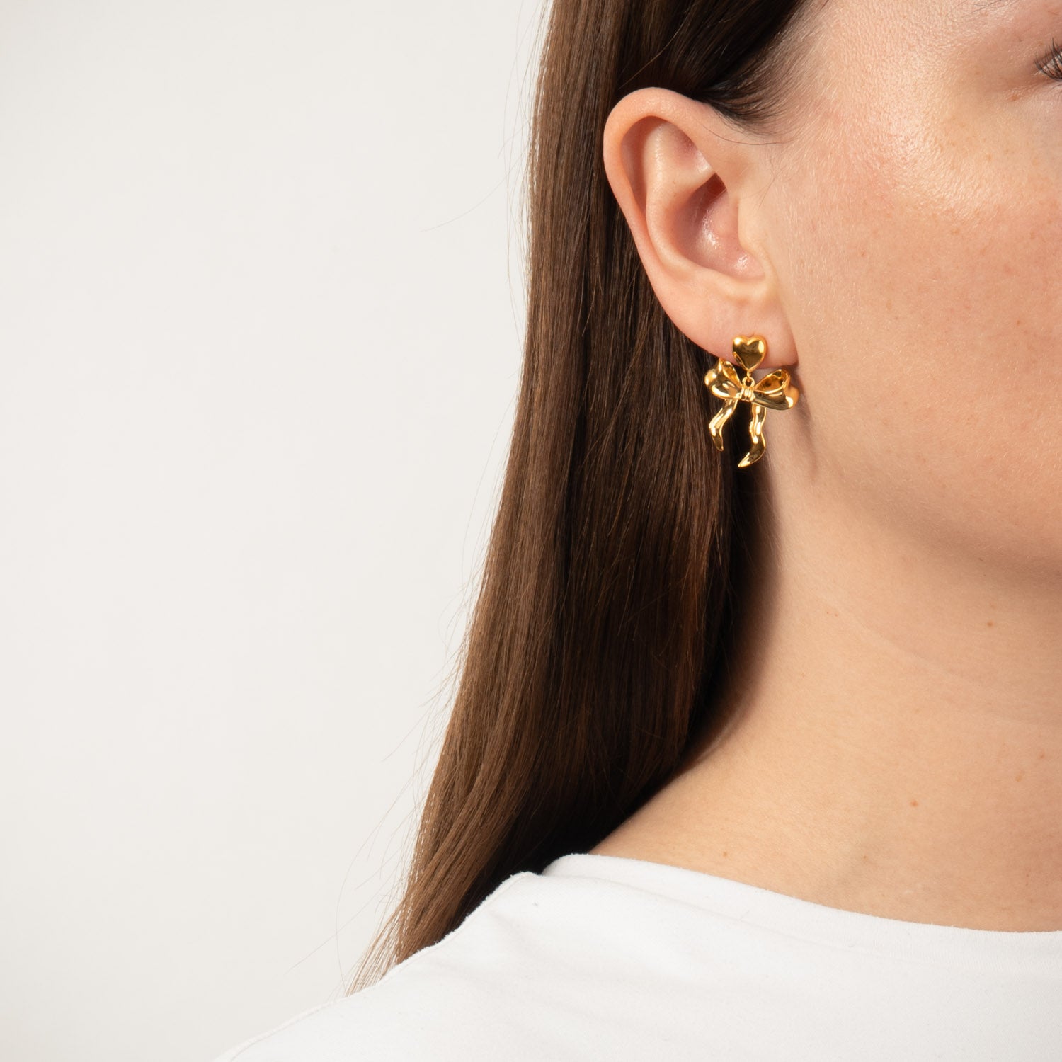LuvaLu Jewellery - Chambéry Heart Bow øreringe - Forgyldt sølv