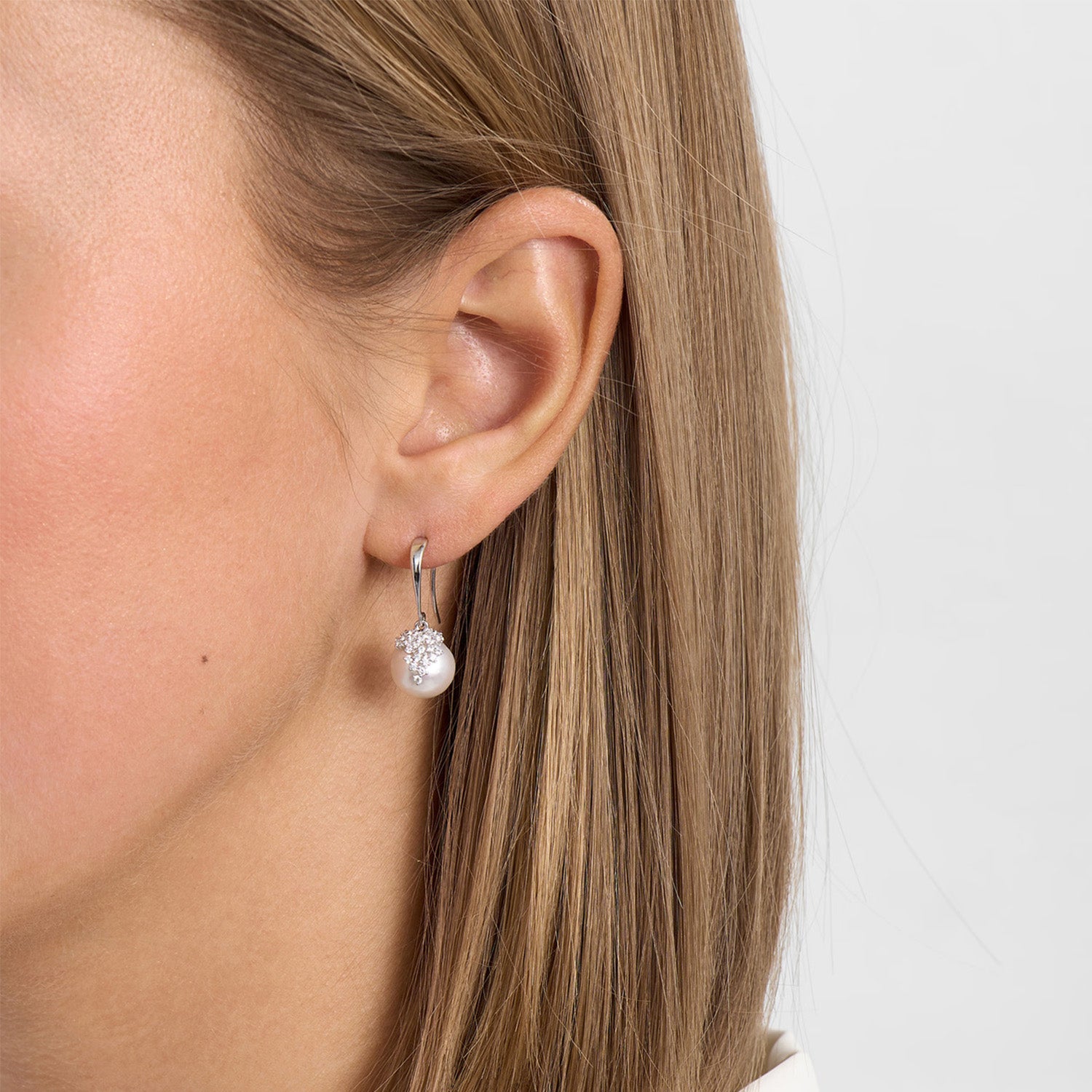 Mads.Z - Chloé øreringe, zirkonia/ferskvandsperler - Sølv