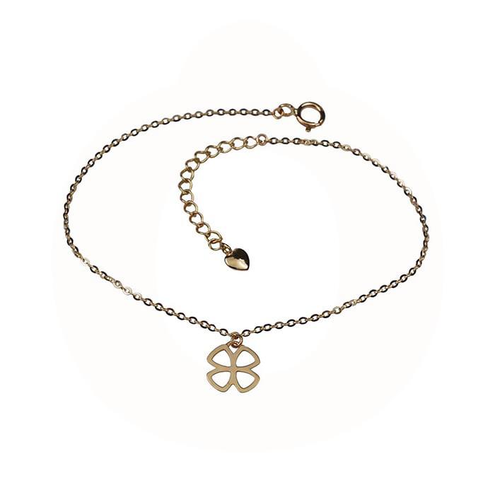 Armbåndet er udført i en smuk guldfarve, der tilføjer en varm glød til dit håndled. Den delikate kæde er både elegant og holdbar, hvilket gør det til et ideelt valg for dem, der ønsker et tidløst smykke. Firkløveret, der hænger som vedhæng, er en fin detalje, der fanger lyset på en subtil måde.