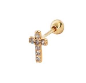 Ørestikken er udført i en smuk guldfarve, der fanger lyset og tilføjer en subtil glans til dit udseende. Det enkle korsdesign er prydet med små, funklende sten, der giver et ekstra strejf af elegance. Den glatte overflade og det fine håndværk sikrer, at ørestikken føles behagelig at bære hele dagen.